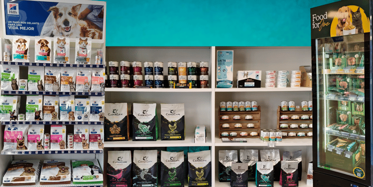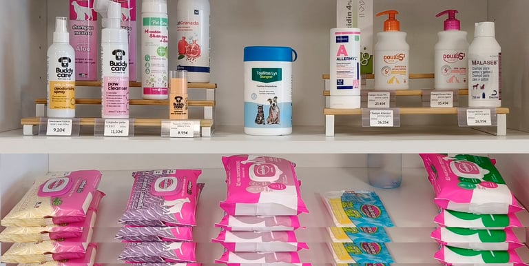 Podréis encontrar una completa sección de parafarmacia veterinaria, con productos esenciales para el cuidado diario y el manejo de pequeñas urgencias en casa.